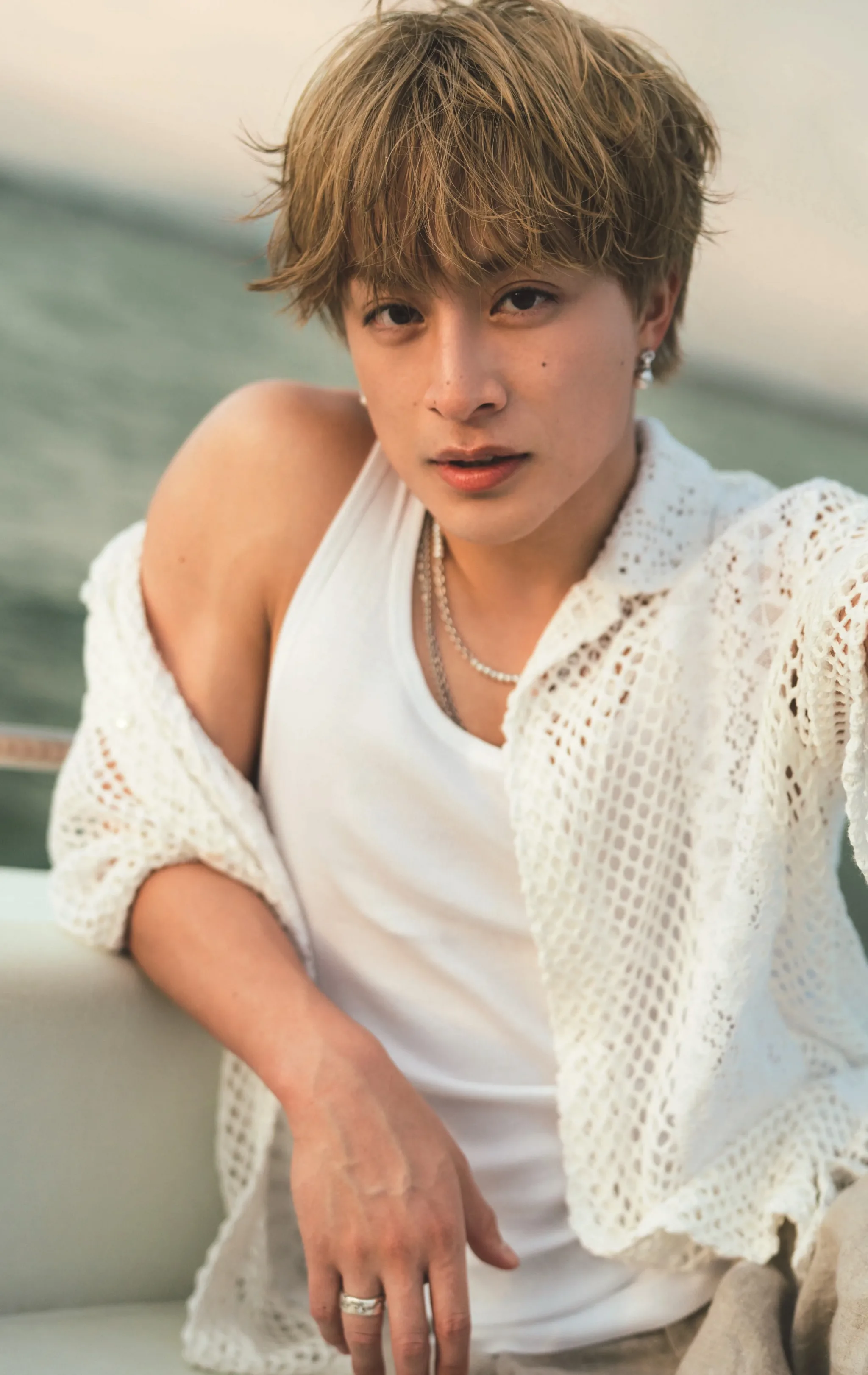 写真集を通して本人がヘアスタイルにこだわり、各シーンで色んな髪型が楽しめます。なかでもこの「クルージングの夕景シーン」の髪型は本人のお気に入りです。