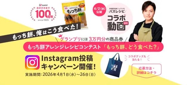 📎 【リュウジ氏が驚愕!】かね貞100周年で新食感「もっち餅」バズレシピ公開!豪華賞品が当たる初のコンテストも開催!