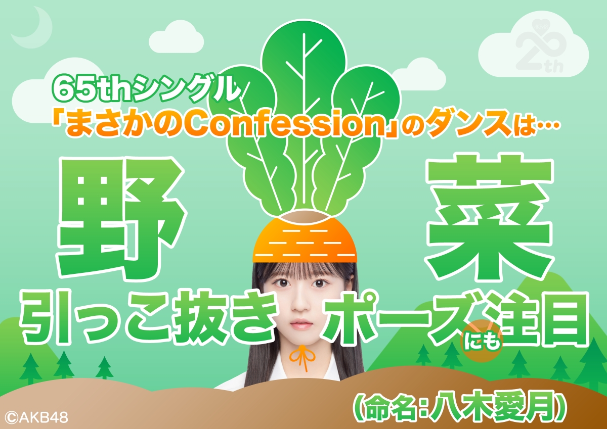📎 AKB48 初の研究生センター八木愛月命名〝野菜引っこ抜きポーズ〟にも注目!【4月2日(水)リリース「まさかの Confession」】MV 公開・先行配信・パフォーマンス初披露!